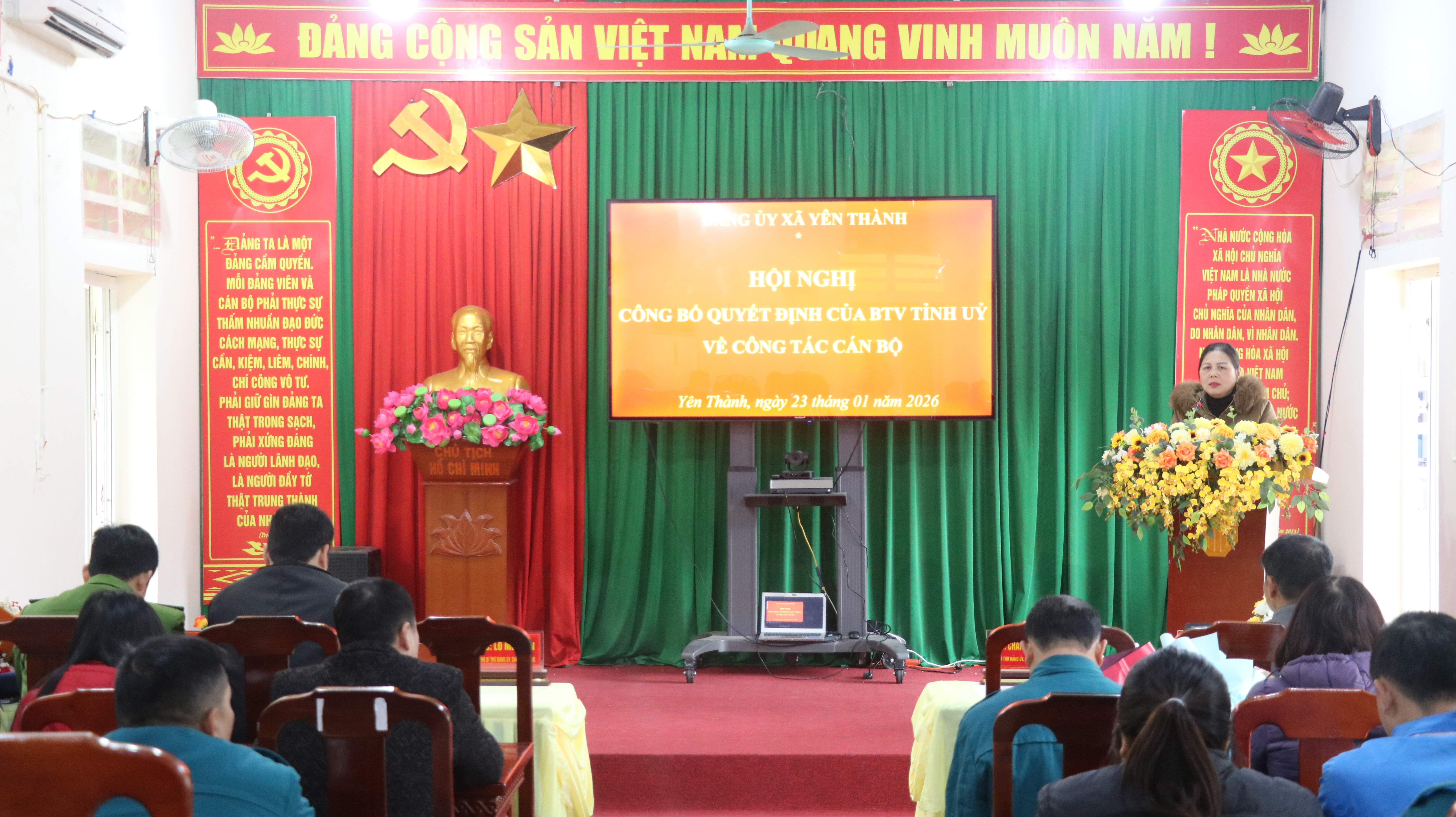 Theo đó, đồng chí Chẳng Thị Liên – Bí thư Đảng ủy, Chủ tịch HĐND xã đã trao quyết định cho đồng chí Hoàng Văn Toàn về việc miễn nhiệm chức danh Chỉ huy trưởng Ban Chỉ huy Quân sự xã, thôi tham gia BCH Đảng bộ, BTV Đảng ủy xã Yên Thành và bổ nhiệm Phó Chỉ huy trưởng Ban Chỉ huy Quân sự xã. Đồng thời trao quyết định chỉ định đồng chí Sa Nhật Đặng giữ chức vụ Chỉ huy trưởng Ban Chỉ huy Quân sự xã Yên Thành, tham gia Ban chấp hành Đảng bộ, BTV Đảng ủy xã Yên Thành nhiệm kỳ 2025-2030.