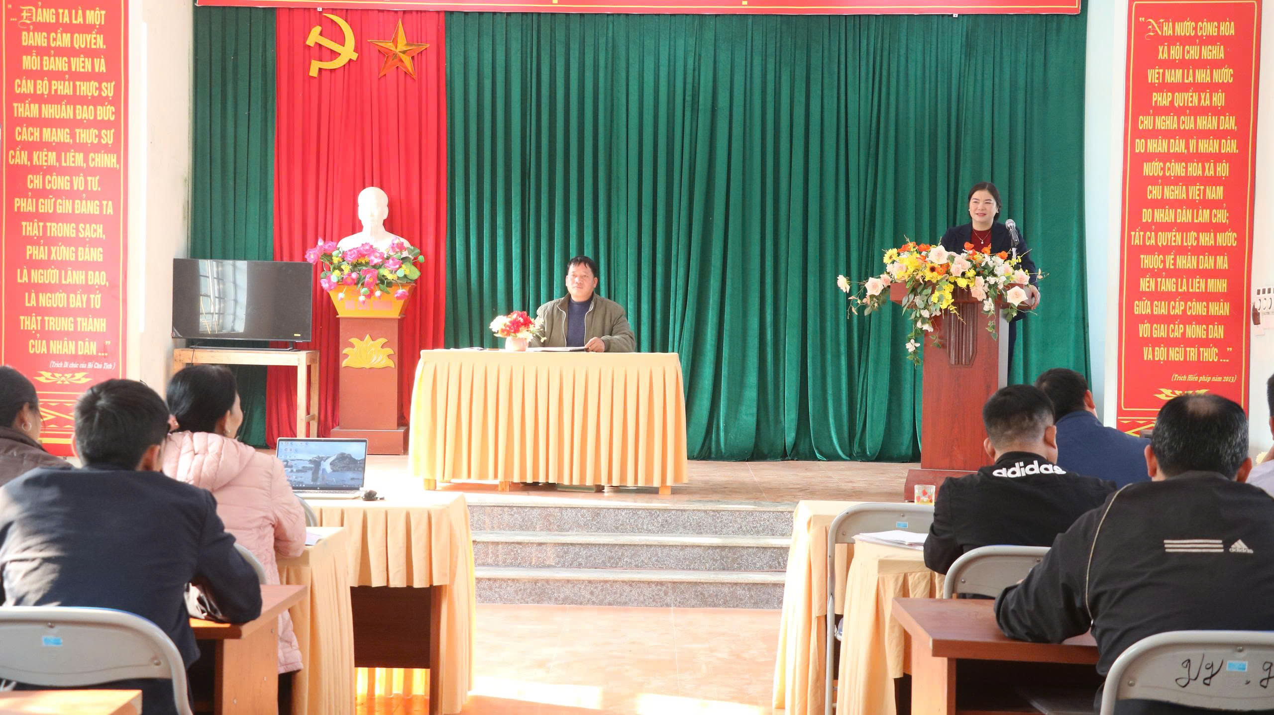 Đồng chí Chẳng Thị Liên - Bí thư Đảng ủy, Chủ tịch HĐND xã phát biểu chỉ đạo tại Chi bộ thôn Yên Thượng