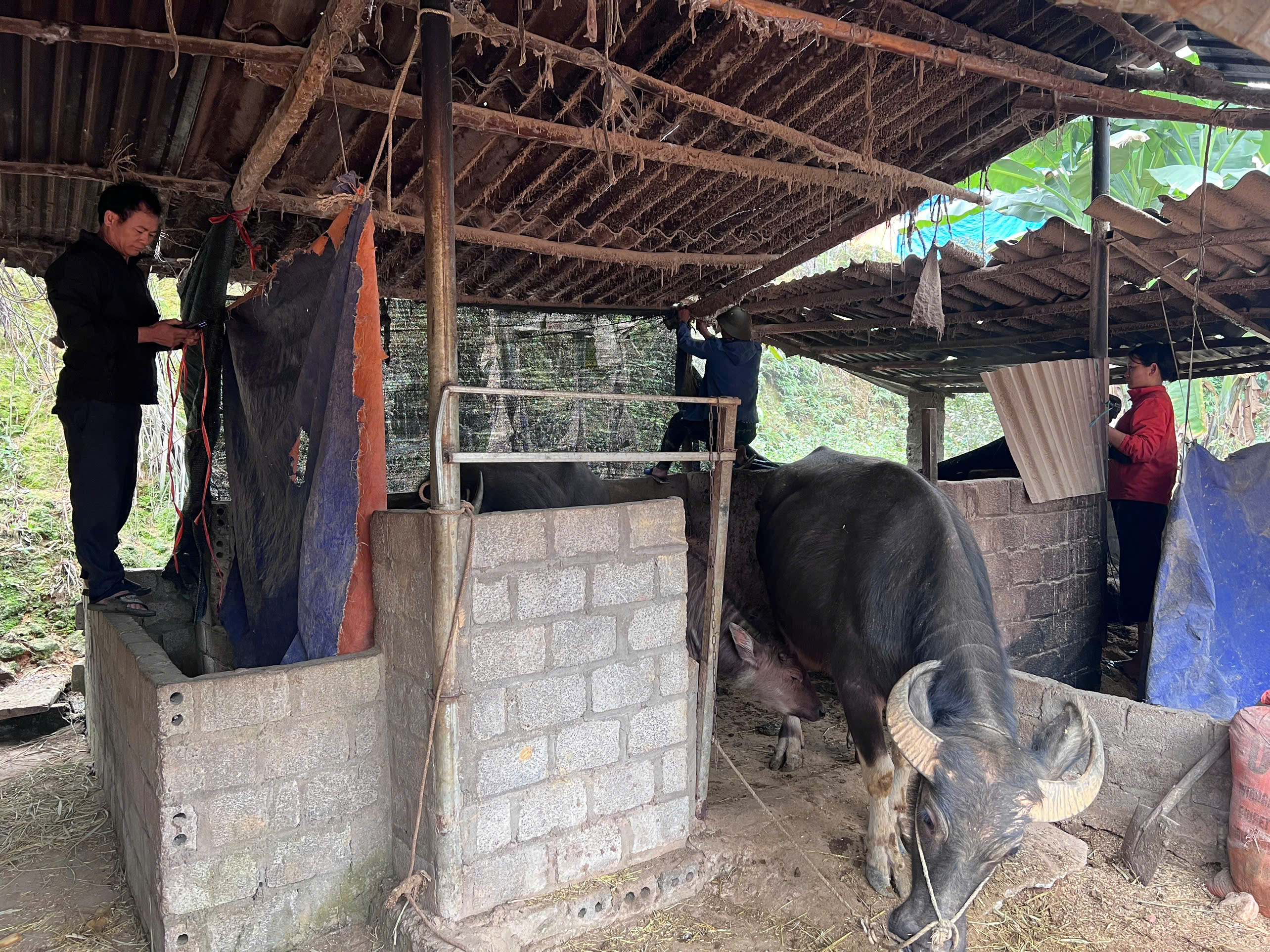 Đoàn công tác đã tiến hành kiểm tra thực tế điều kiện chuồng trại, công tác che chắn, dự trữ thức ăn, nước uống, vệ sinh tiêu độc khử trùng và tình hình tiêm phòng cho đàn gia súc, gia cầm tại các hộ chăn nuôi. Qua kiểm tra, đoàn đã hướng dẫn người dân thực hiện tốt các biện pháp giữ ấm cho vật nuôi, không chăn thả gia súc khi nhiệt độ xuống thấp, tăng cường khẩu phần ăn và bổ sung khoáng, vitamin để nâng cao sức đề kháng.