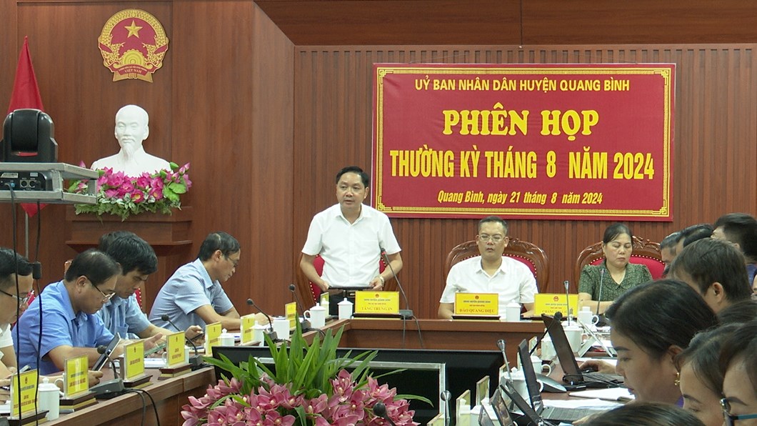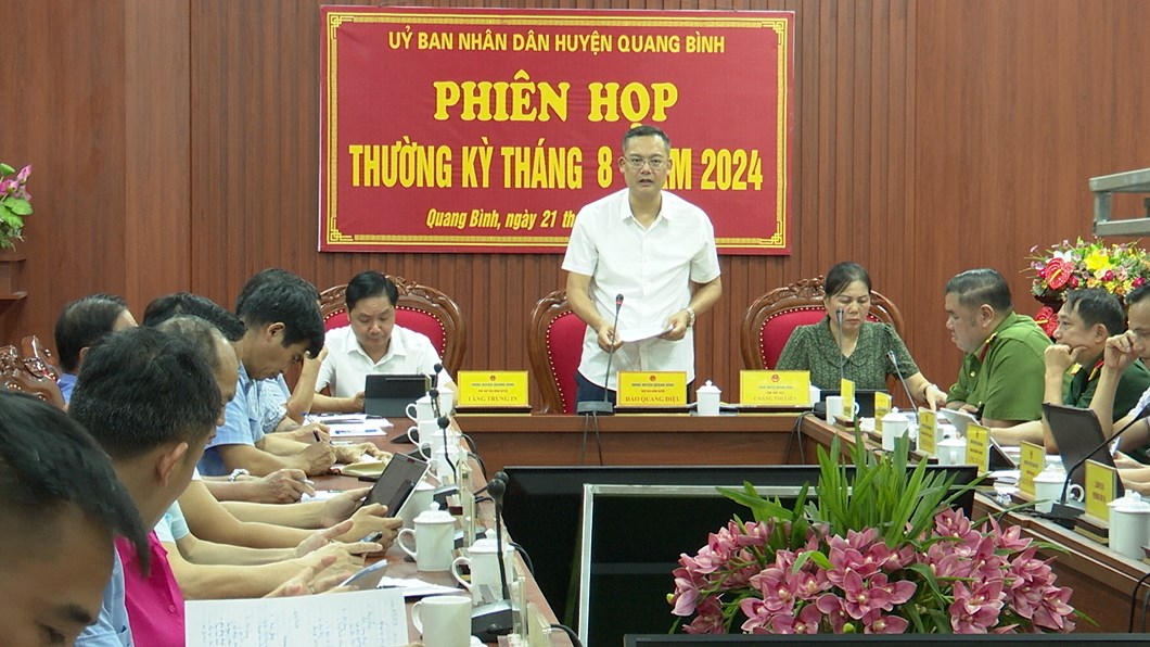 Qua nghe báo cáo và các đại biểu tham gia thảo luận tại phiên họp lãnh đạo UBND huyện yêu cầu trong thời gian tới tập trung chỉ đạo quyết liệt kế hoạch thu ngân sách trên địa bàn; tiếp tục triển khai 03 Chương trình mục tiêu Quốc gia; chủ động công tác phòng chống thiên tai theo phương châm “4 tại chỗ”. Đối với Ban quản lý dự án đầu tư xây dựng đẩy tiến độ tu sửa các trường, lớp học kịp thời năm học mới, tăng cường giám sát các công trình xây dựng trên địa bàn huyện, xã. Phòng Giáo dục - Đào tạo huyện phối hợp với UBND các xã, thị trấn chỉ dạo các trường học chuẩn bị đầy đủ các điều kiện để khai giảng nhiệm vụ năm học mới. Văn phòng NTM huyện phối hợp với các xã, thị trấn tiếp tục thực hiện tốt các tiêu chí xây dựng NTM và việc tiếp nhận xi măng. Các xã, thị trấn rà soát diện tích đất đăng ký cây trồng vụ Đông; tiếp tục đẩy mạnh kế hoạch trồng rừng; công tác tuần tra, quản lý, bảo vệ rừng, phòng cháy chữa cháy rừng; tiếp tục duy trì thực hiện phong trào Ngày thứ 7, Chủ nhật vì Nông thôn mới; duy trì lịch trực tiếp công dân và giải quyết đơn thư theo quy định; làm tốt công tác phòng, chống các loại dịch bệnh sảy ra trên đàn gia súc, gia cầm; quản lý tốt việc khai thác khoáng sản trên địa bàn; cùng với đó tổ chức phát động và đăng ký thực hiện các công trình chào mừng Đại hội đảng các cấp; thường xuyên báo cáo kịp thời cấp trên về các vụ việc, sự việc sảy ra trên địa bàn các xã, thị trấn. Ngoài các nhiệm vụ nêu trên các cấp, ngành đẩy mạnh công tác cải cách hành chính, giải quyết thủ tục hành chính trên môi trường điện tử, làm tốt công tác đảm bảo ANTT, ATGT trên địa bàn toàn huyện.