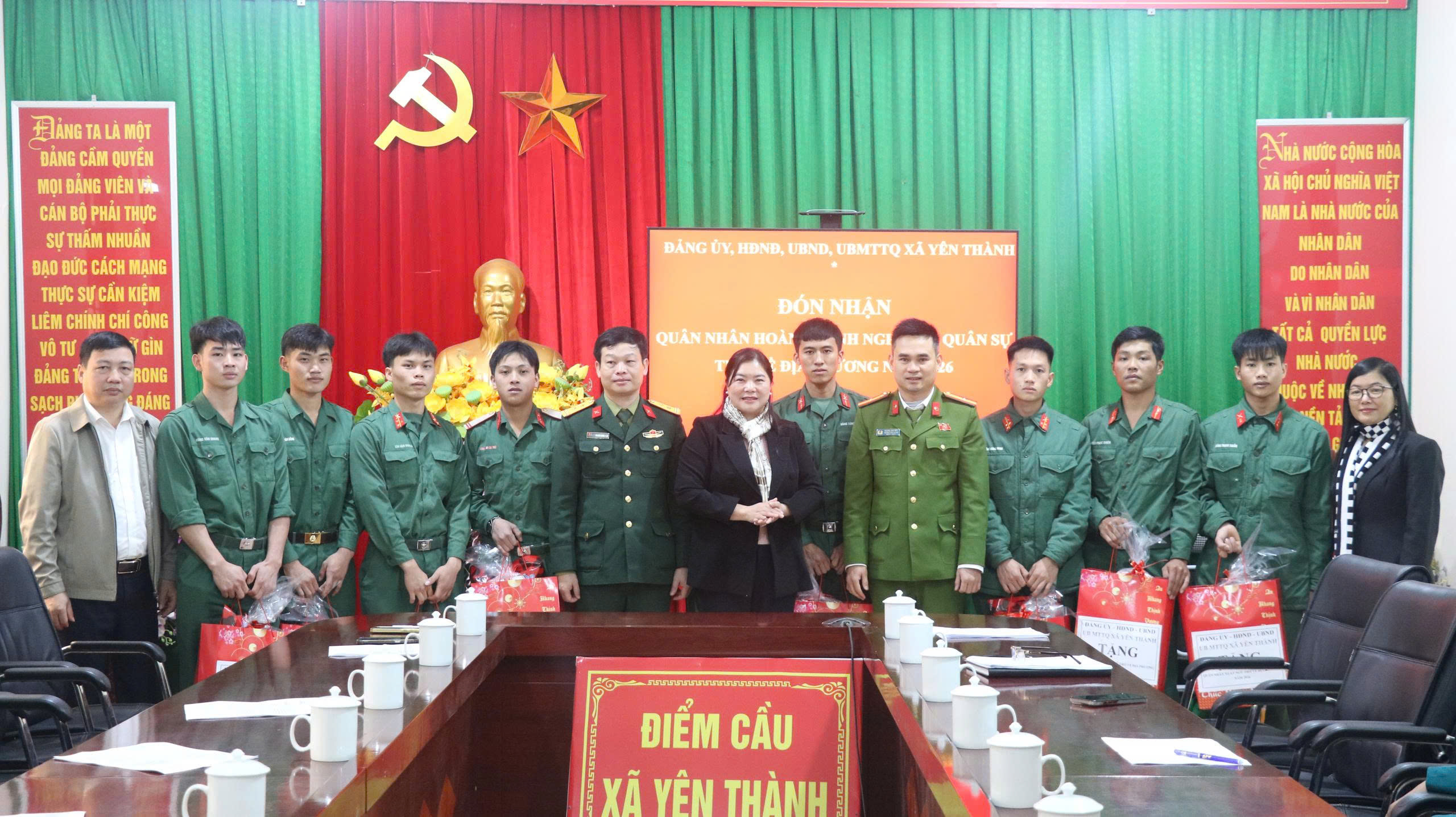 Tại buổi lễ, đồng chí Lò Mùi Hàn – Phó Bí thư, Chủ tịch UBND xã đã chúc mừng, biểu dương tinh thần trách nhiệm và sự trưởng thành của các quân nhân sau thời gian rèn luyện trong môi trường quân đội. Các đồng chí xuất ngũ đều thể hiện bản lĩnh, tác phong nghiêm túc, chấp hành tốt kỷ luật quân đội và hoàn thành xuất sắc nhiệm vụ được giao. Năm nay, xã Yên Thành đón 9 quân nhân xuất ngũ, trở về địa phương từ Lữ đoàn 543, Trung đoàn 174, Đồn biên phòng Thàng Tín. Cũng tại buổi lễ, lãnh đạo Phòng Văn hóa cũng đã thông tin, định hướng các chính sách hỗ trợ các quân nhân, tạo điều kiện cho quân nhân tiếp tục học tập, lao động, tìm kiếm việc làm và phát triển kinh tế, góp phần xây dựng quê hương Yên Thành ngày càng giàu đẹp.